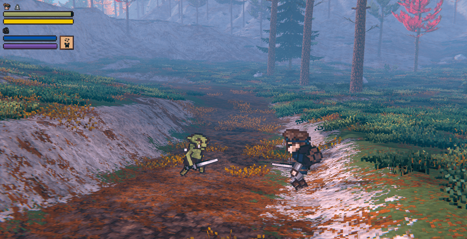 You’ll be playing as Bob, a farm boy who left his homeland in search of a more interesting life. By a stroke of luck, he meets Veil, a child of a very unusual species. Bob specializes in up-close combat.